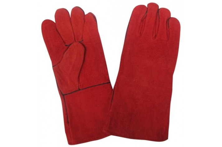 Guante de soldador fabricado en 100% cuero descarne rojo con forro de 1.0 mm – 1.2 mm